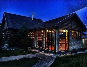 Внутри дома стильный дизайн с современной мебелью На первом этаже находится просторный банкетный зал на 50 персон, кухня, оборудованная бытовой техникой и набором посуды, обеденная зона, спальня на четверых человек с душевой, где есть стиральная машинка, гладильная доска и утюг.